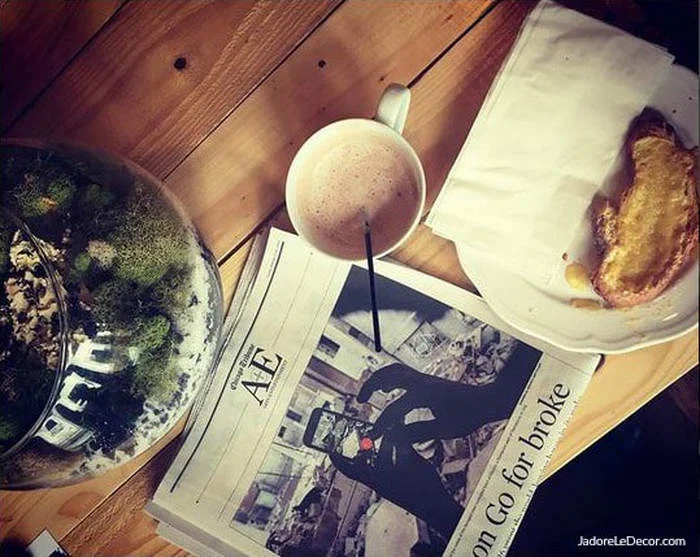 It was taken last year in December, on a cold dreary day inside a warm French café— Maison Parisienne. Together my husband and I enjoyed a delectable croissant lathered with almond butter, and a rich cup of very traditional hot chocolate. I can still hear us taking turns murmuring "Mmmm" with each sip and bite, as we chatted with Frenchman, Aaron, one of the café's owners.
